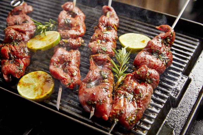 - Lammspieße auf heißem Grill oder heißer Grillplatte unter Wenden ca. 4 Minuten lang braten bzw. grillen. Herunternehmen und kurz ruhen lassen. Nach Geschmack salzen.